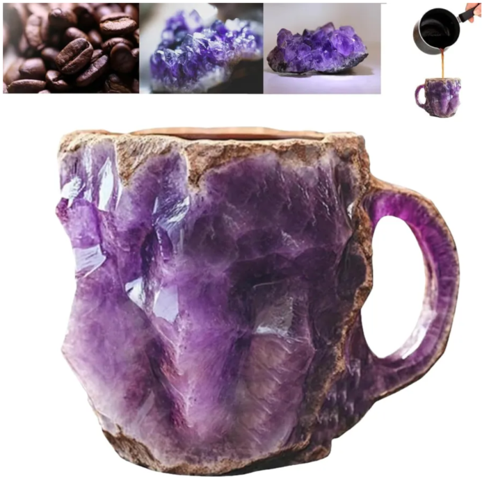 These Mineral Crystal Coffee Mugs are truly unique, handcrafted to mimic beautiful gemstones like amethyst, obsidian, and agate. Each mug is a one-of-a-kind piece designed with high-quality craftsmanship for lasting durability. Built to be both dishwasher and microwave safe, they make a stunning, thoughtful gift for friends, family, or that special someone.