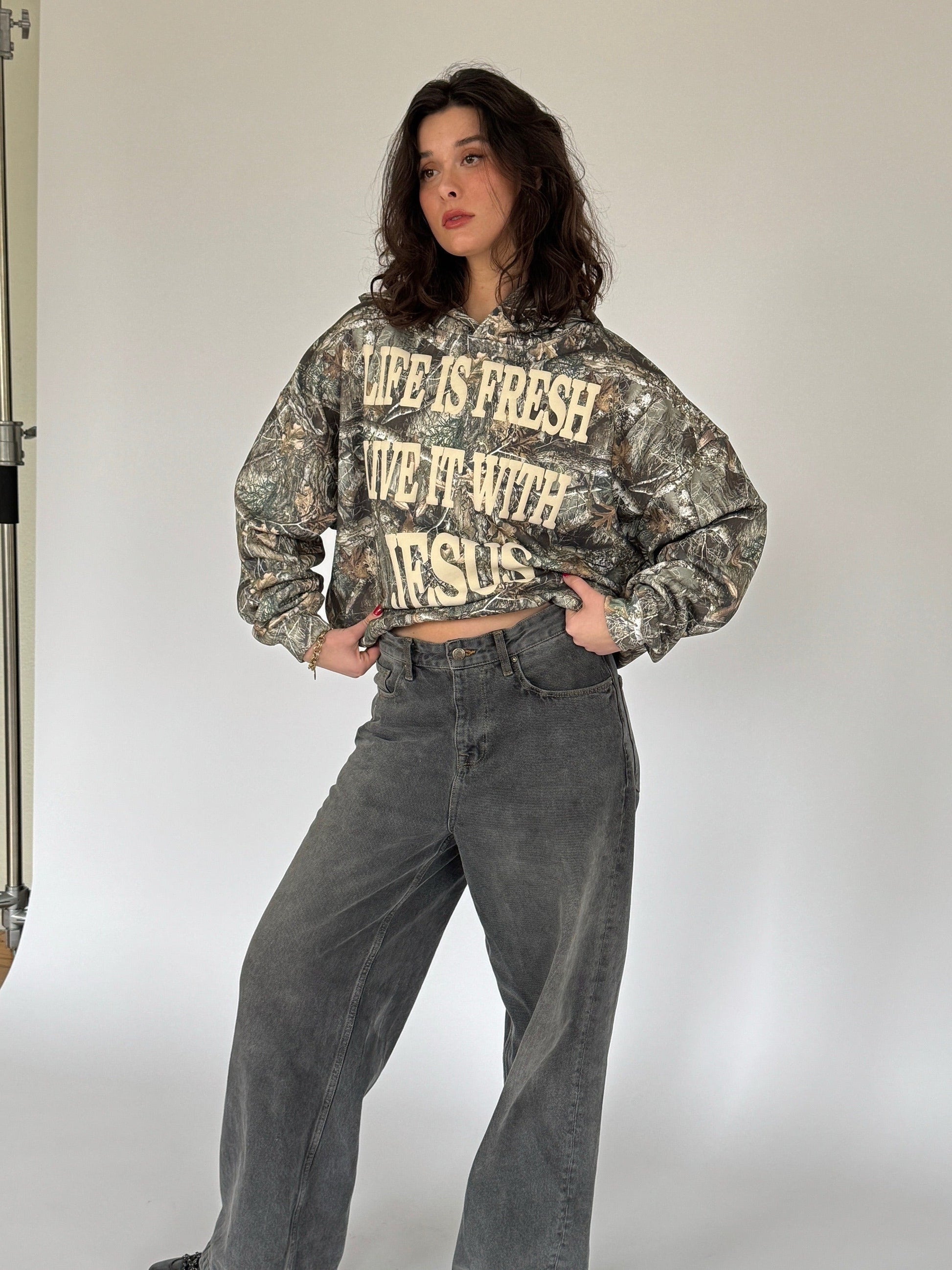 This isn’t just another graphic hoodie—it’s a movement you can wear. The front slogan print turns faith into a fashion moment, letting you walk in your message with bold confidence. The neutral camo tones match effortlessly with jeans, cargos, or joggers, making it your new go-to for any look.