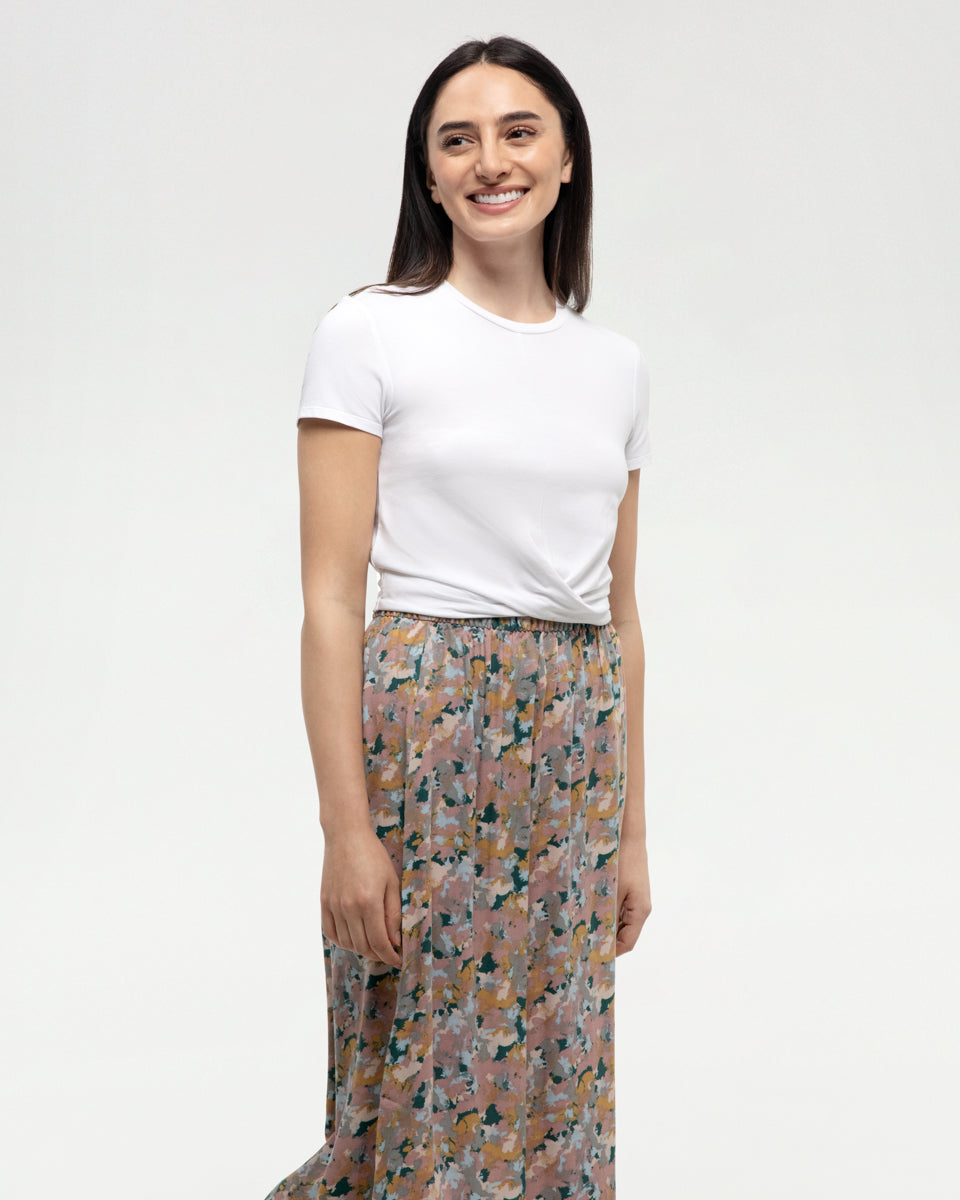 An everyday t-shirt with a twist — literally. This stretchy twist-front tee is crafted from silky soft EcoTech Jersey that keeps you cool on the move and our planet cool for the future.
