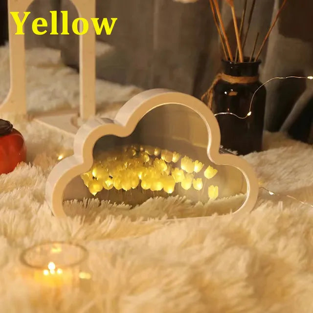 Illuminate your nights with a serene blend of blossoms and clouds, soothing you into a peaceful slumber.